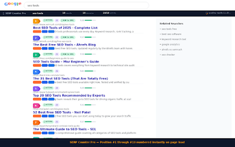 SERP Counter Pro는 Google 검색 결과를 효율적으로 분석해야 하는 사용자를 위해 설계된 무료 Chrome 확장 프로그램입니다. 이 도구는 사용자가 한 페이지에서 최대 100개의 유기적 결과의 순위를 보고 추적할 수 있도록 하며, 쉽게 식별할 수 있도록 독특한 색상 코드가 있는 위치 배지를 표시합니다. 이 확장 프로그램은 페이지 두에서 열까지의 추가 결과를 자동으로 로드하며, 페이지를 새로 고침할 필요 없이 사용자에게 원활한 경험을 보장하여 포괄적인 순위 데이터를 수집할 수 있도록 합니다.